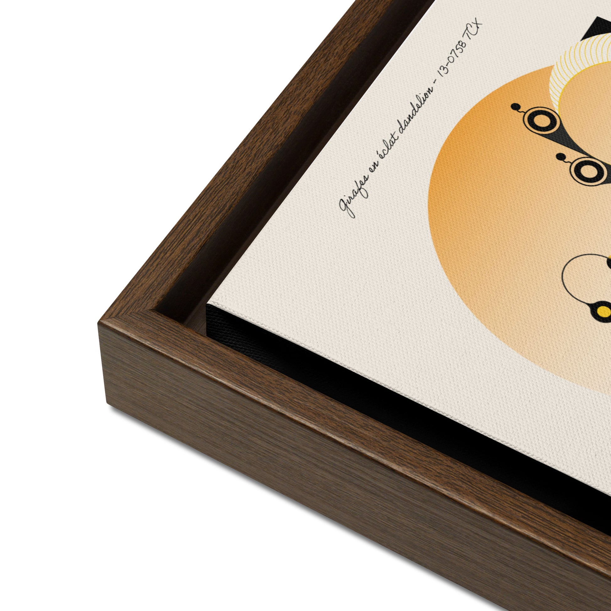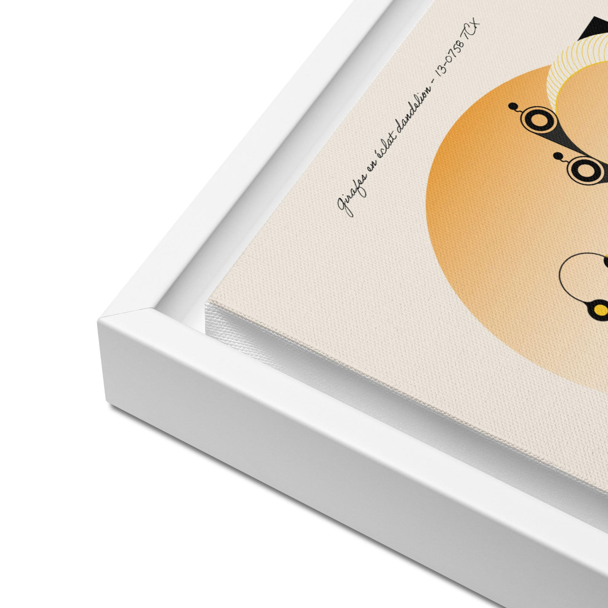 - Les toiles encadrées avec des cadres marron et noirs ont un intérieur noir autour de la toile, et les toiles avec des cadres blancs ont un intérieur blanc autour de la toile.