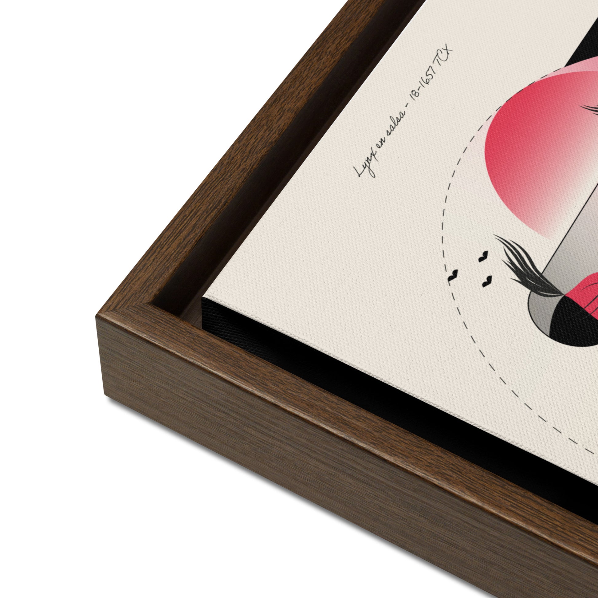 - Les toiles encadrées avec des cadres marron et noirs ont un intérieur noir autour de la toile, et les toiles avec des cadres blancs ont un intérieur blanc autour de la toile.