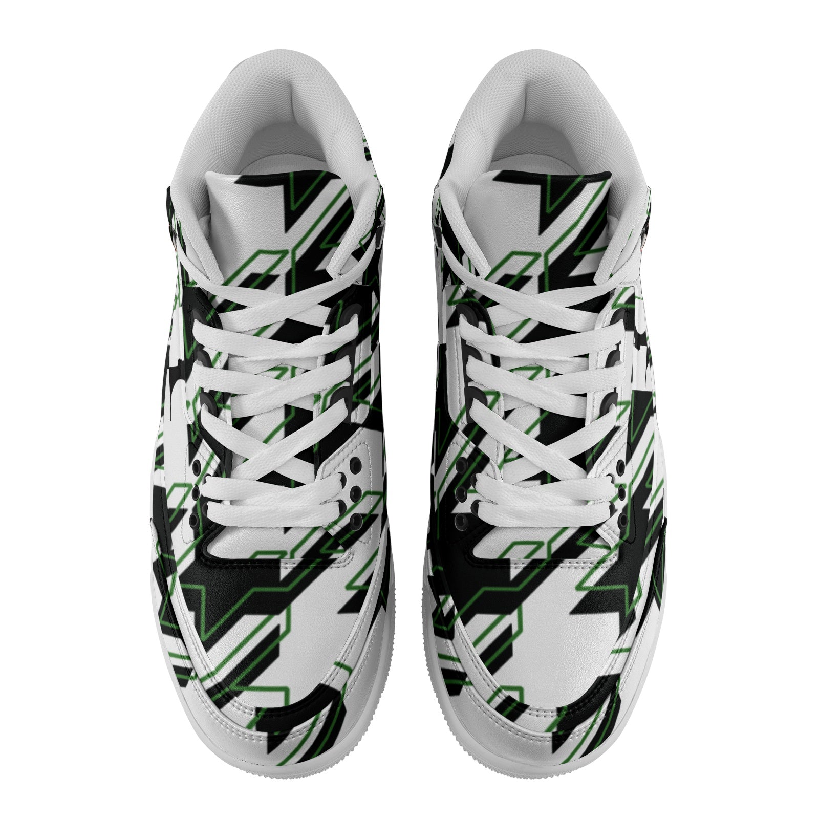 Affichez un style unique avec ces sneakers montantes au design inspiré du monde geek et de l’origami. Chaque détail est pensé pour marier l’esthétique digitale et l’art du pliage, offrant un rendu graphique et innovant qui capte le regard. Les motifs et formes angulaires rappellent l’univers tech et futuriste, tandis que les touches d’origami apportent créativité et originalité à chaque pas.