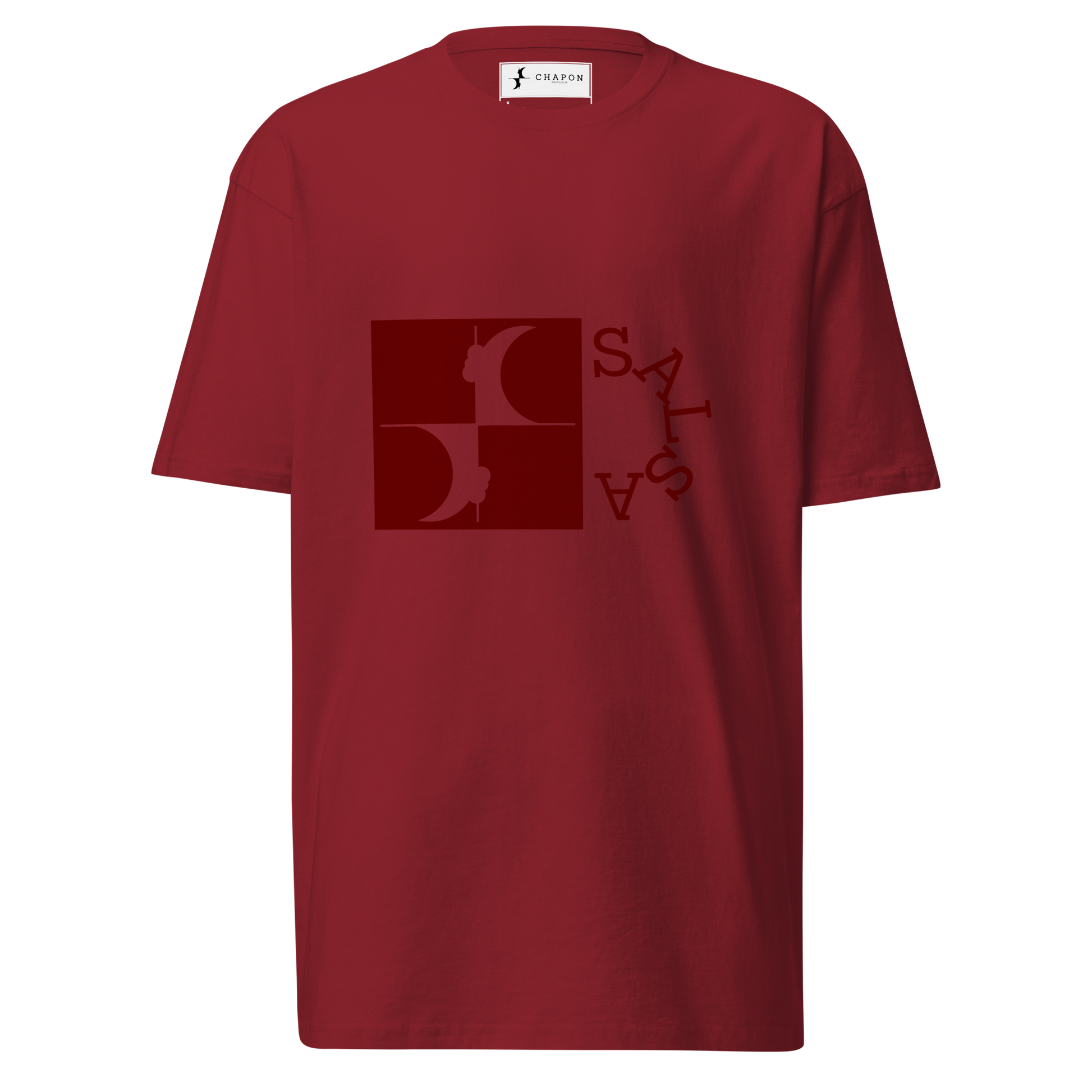 Alliez style audacieux et créativité graphique avec ce t-shirt épais unisexe rouge foncé, orné dans le dos d’un logo en noir et blanc sur lequel se superpose un dessin de graines et de feuilles en surexposition. Ce motif évoque le côté végétal et organique, tout en créant un effet holographique subtil qui capte la lumière et attire le regard.